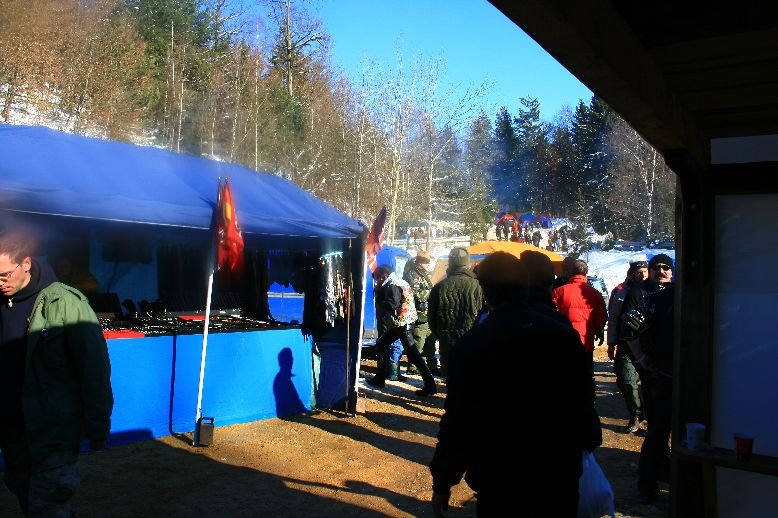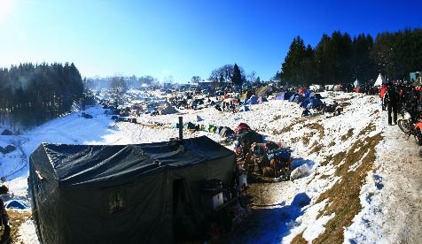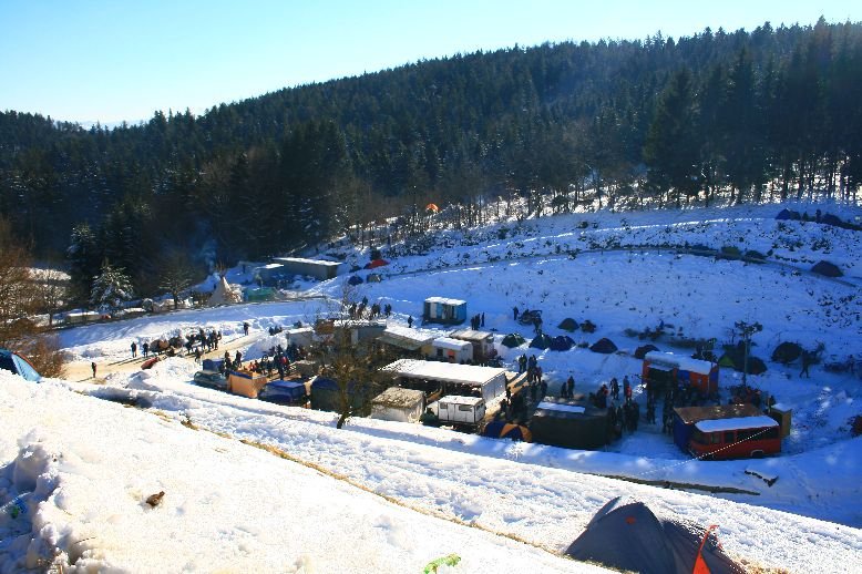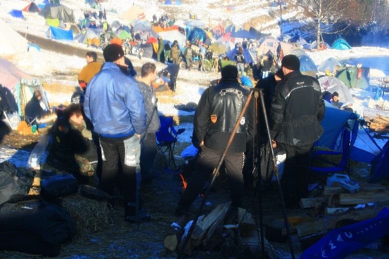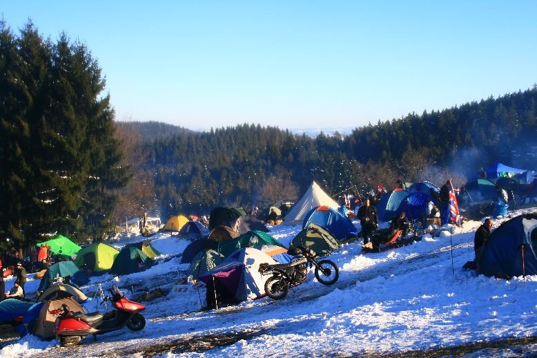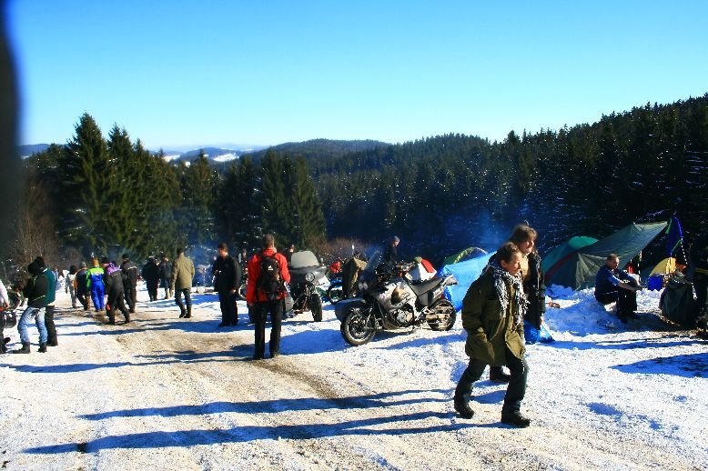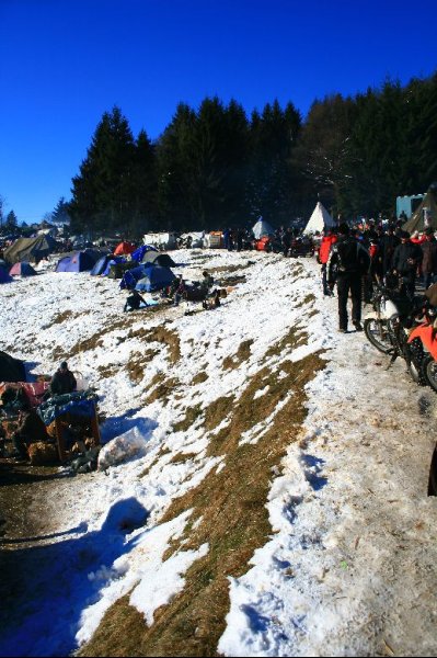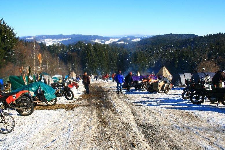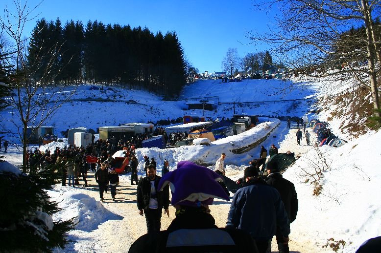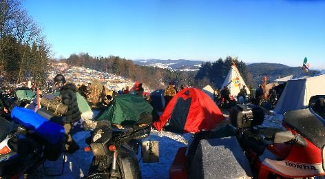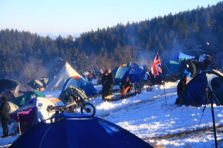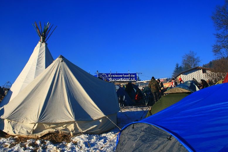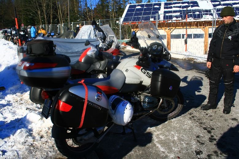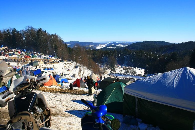 Nachdem nun das Moped wieder komplett für die Abreise nach Solla / Loh war, konnte es am Freitag nun endlich losgehen. Die Telefonlisten waren ausgetauscht, das Moped startklar und sogar ein Mitstreiter war gefunden – also alles Bestens. Es war seit Jahren wieder das erste Mal, das ich einen Mitfahrer für das Treffen gefunden hatte. Letztes Jahr hatte wohl das Wetter mit Schneefällen am Donnerstag und Freitag den Einen oder Anderen abgehalten dann doch noch zu kommen. Nach anfänglichem Schneeregen bis Stuttgart entwickelte sich die Anfahrt zu einer reinen Spazierfahrt nach Solla ohne besondere Hindernisse. Die Vorhersagen einiger, dass das Elefantentreffen wegen der Winterreifenpflicht für Motorräder vor dem AUS steht, bewahrheiteten sich nicht. Auch dieses Jahr waren in etwa gleich viele Motorradfahrer wie in den vergangenen Jahren da. Den vielen verschiedenen Diskussionen in diversen Internet – Motorrad – Foren konnte man fast vermuten, das beinahe jeder mit seinem Motorrad auch im Winter unterwegs sei. Dies scheint aber nicht ganz so zu sein. Denn auch dieses Jahr konnte ich viele bekannte Gesichter aus den vergangenen Jahren wieder finden. Die Anderen kommen sicher nächstes Jahr, wenns wieder heißt auf zum Elefantentreffen.
