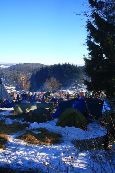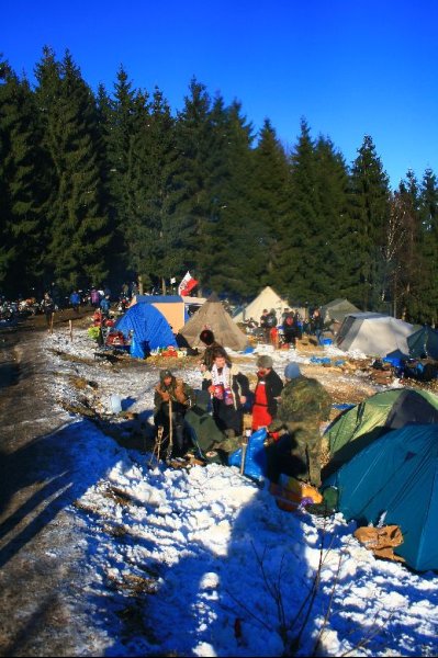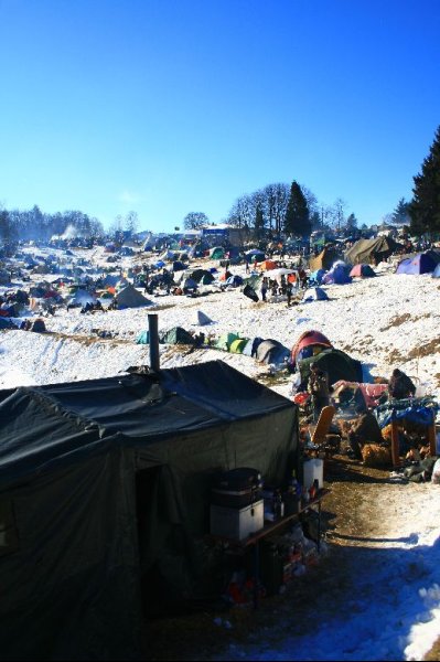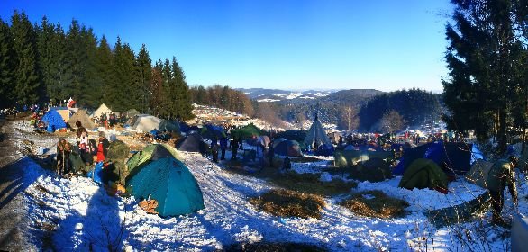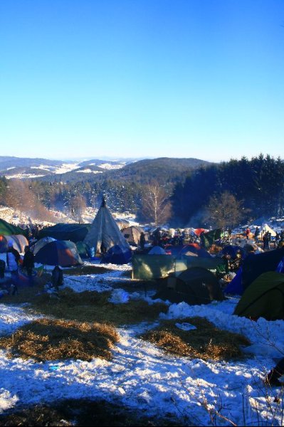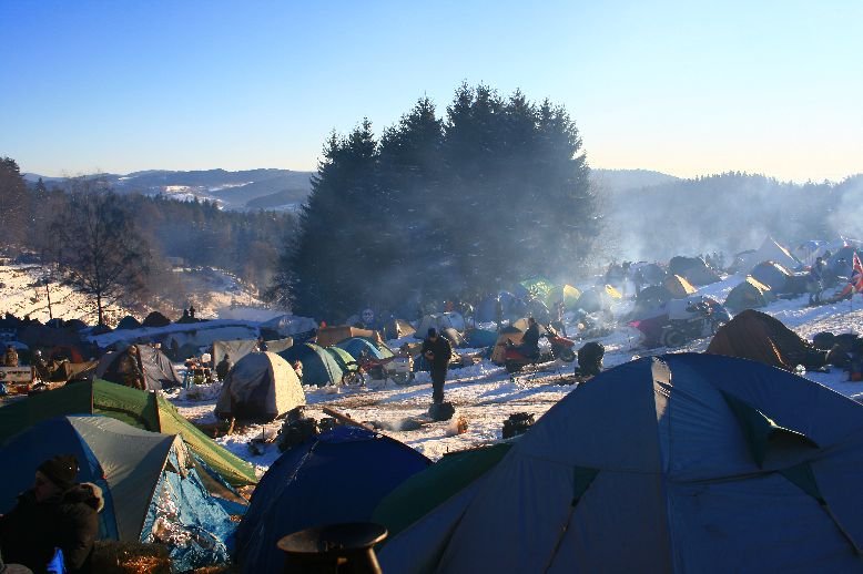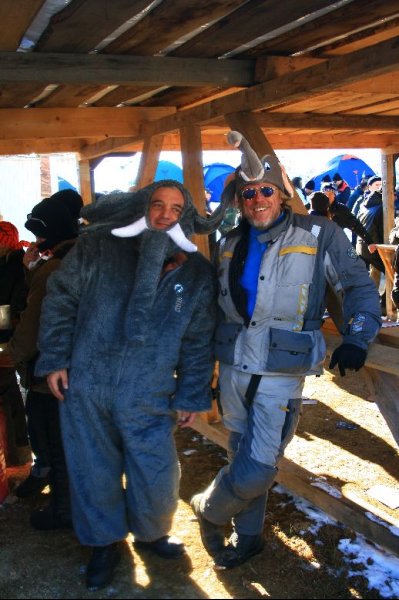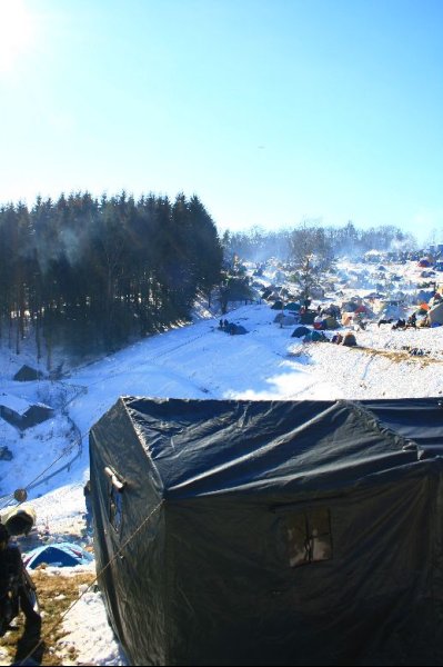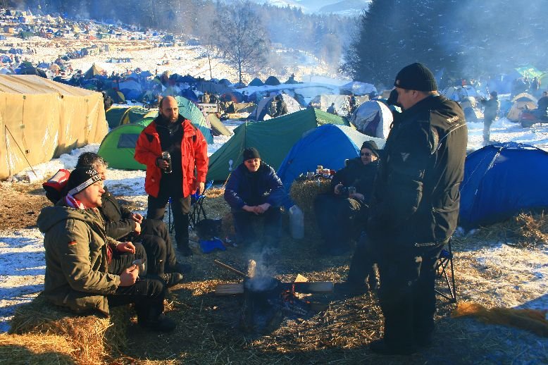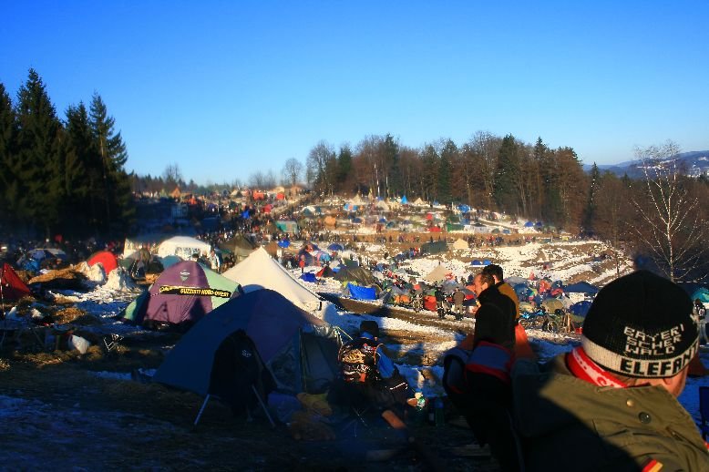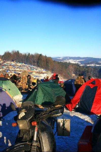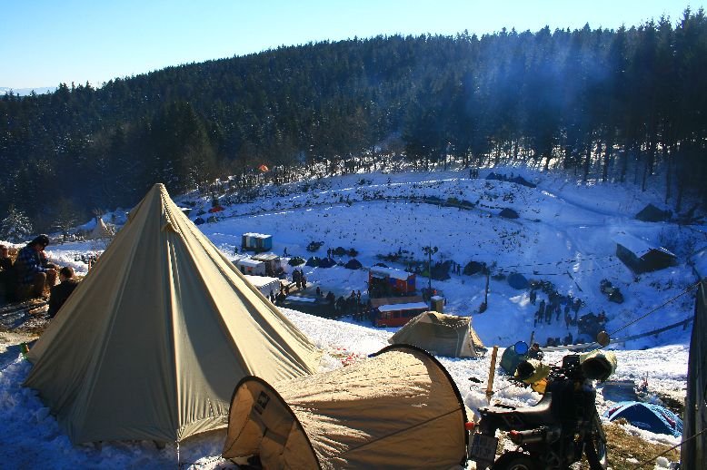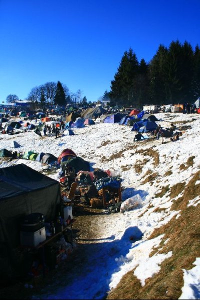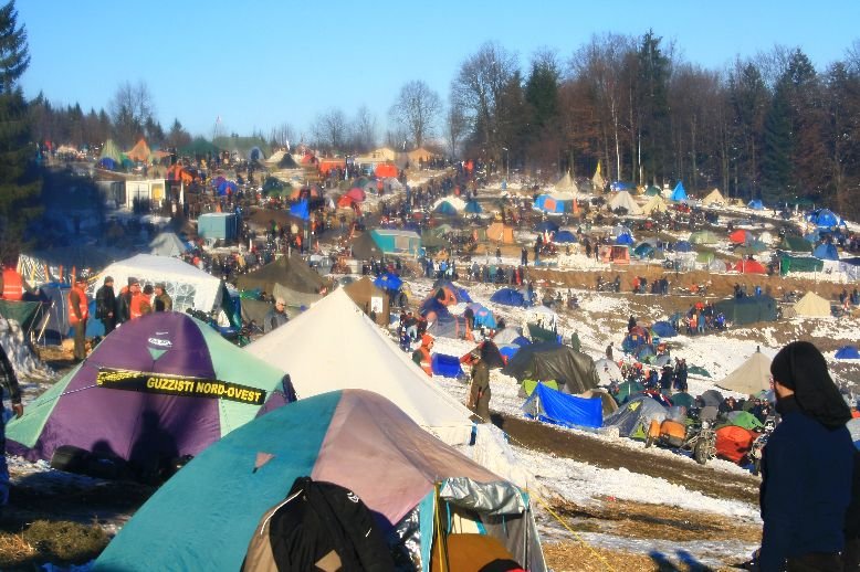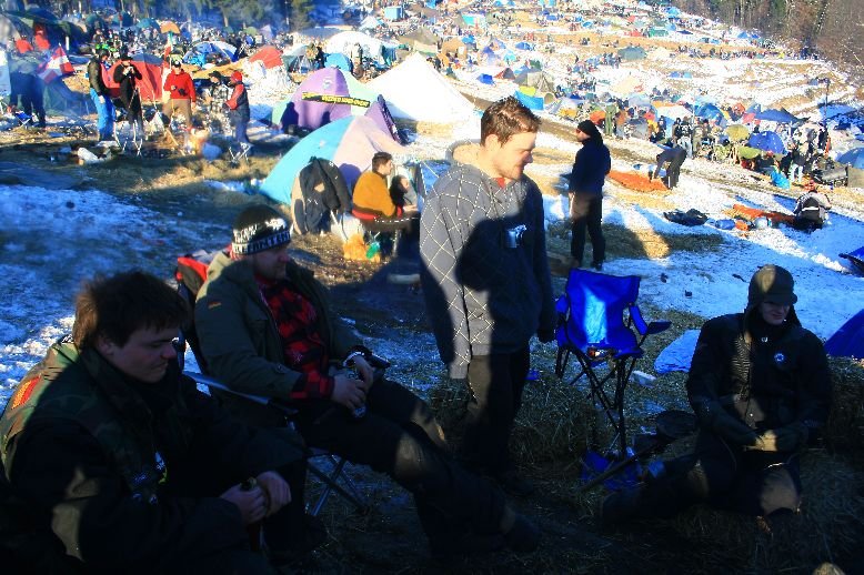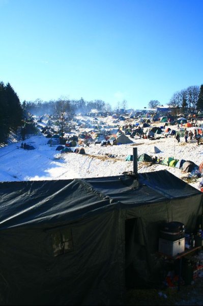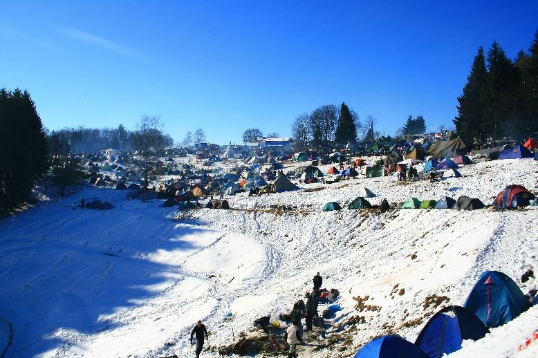 Nachdem nun das Moped wieder komplett für die Abreise nach Solla / Loh war, konnte es am Freitag nun endlich losgehen. Die Telefonlisten waren ausgetauscht, das Moped startklar und sogar ein Mitstreiter war gefunden – also alles Bestens. Es war seit Jahren wieder das erste Mal, das ich einen Mitfahrer für das Treffen gefunden hatte. Letztes Jahr hatte wohl das Wetter mit Schneefällen am Donnerstag und Freitag den Einen oder Anderen abgehalten dann doch noch zu kommen. Nach anfänglichem Schneeregen bis Stuttgart entwickelte sich die Anfahrt zu einer reinen Spazierfahrt nach Solla ohne besondere Hindernisse. Die Vorhersagen einiger, dass das Elefantentreffen wegen der Winterreifenpflicht für Motorräder vor dem AUS steht, bewahrheiteten sich nicht. Auch dieses Jahr waren in etwa gleich viele Motorradfahrer wie in den vergangenen Jahren da. Den vielen verschiedenen Diskussionen in diversen Internet – Motorrad – Foren konnte man fast vermuten, das beinahe jeder mit seinem Motorrad auch im Winter unterwegs sei. Dies scheint aber nicht ganz so zu sein. Denn auch dieses Jahr konnte ich viele bekannte Gesichter aus den vergangenen Jahren wieder finden. Die Anderen kommen sicher nächstes Jahr, wenns wieder heißt auf zum Elefantentreffen.